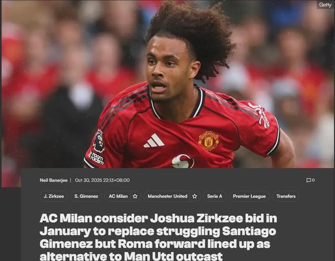 24岁的齐尔克泽本赛季同样在曼联郁郁不得志,赛季至今他只出战了5场比赛,并且全都是替补。